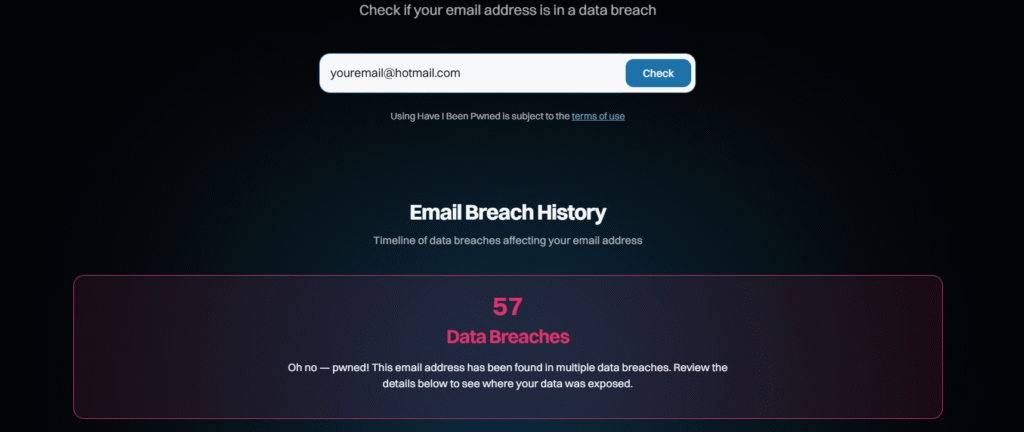 Ingresamos un correo electrónico y vemos si fue filtrado (y en cuantas filtraciones de datos se vio expuesto)